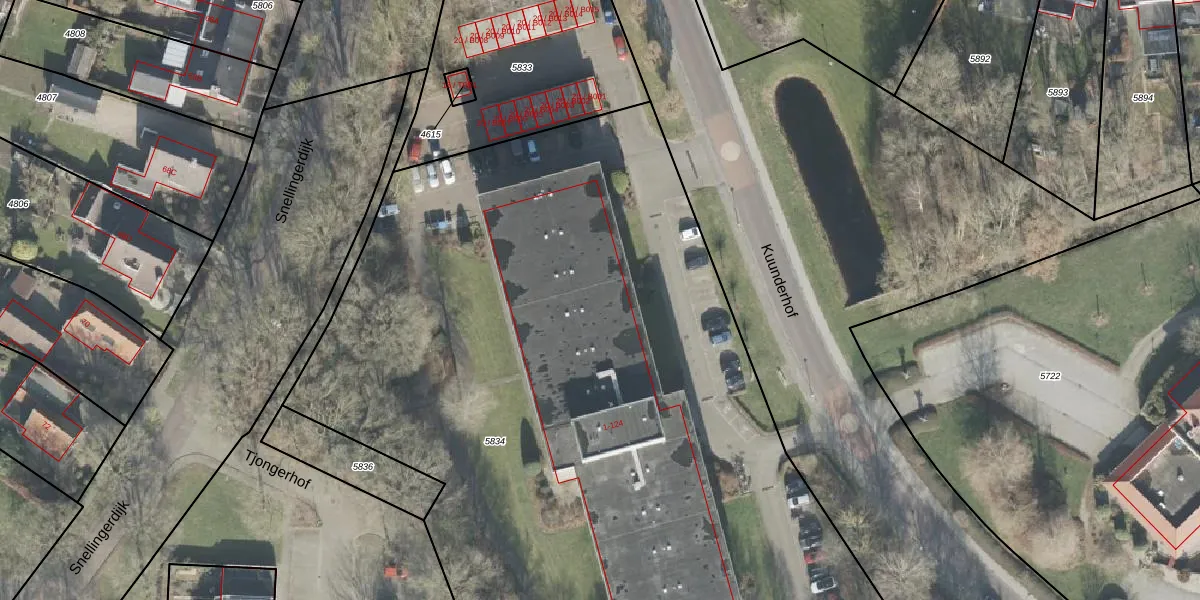 Het perceel waarop Kuunderhof 106 staat heeft een oppervlakte van 5622 m². Dit is een zeer groot perceel. De perceeloppervlakte wordt geregistreerd door het Kadaster. Gedetailleerde informatie over de maten van dit perceel kunt u vinden in het rapport Kadastrale kaart met maatvoering van Kuunderhof 106.