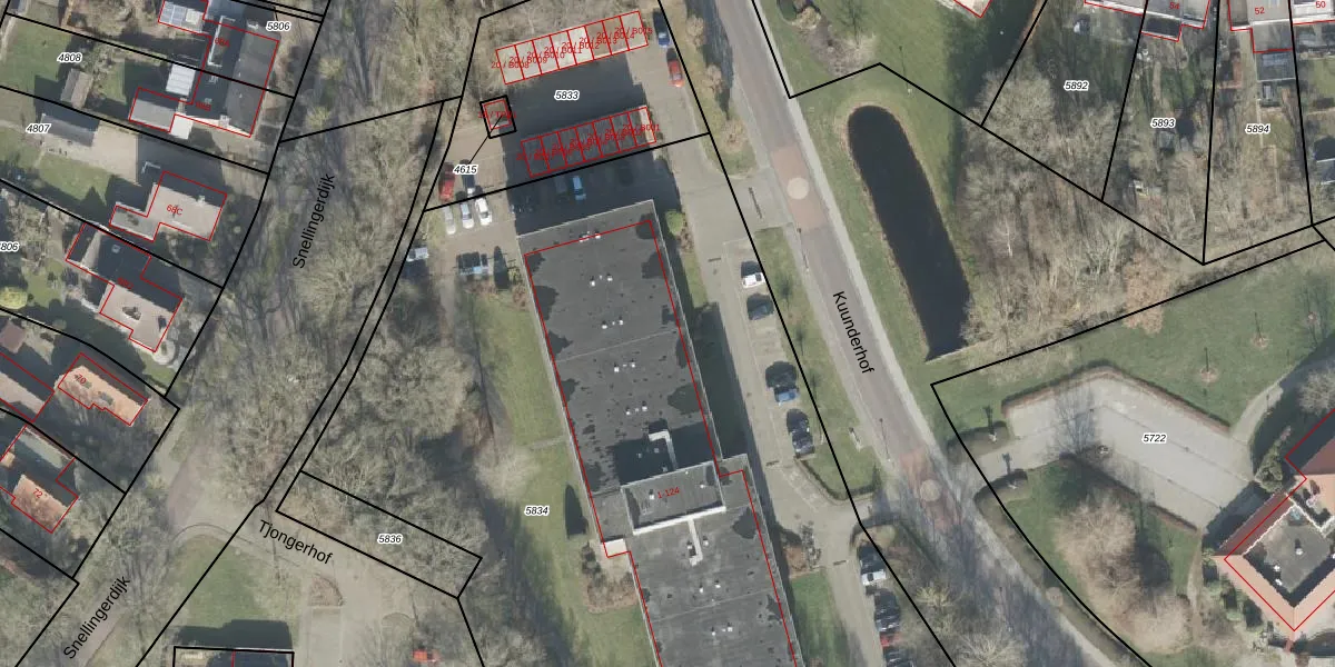 Het perceel waarop Kuunderhof 25 staat heeft een oppervlakte van 5622 m². Dit is een zeer groot perceel. De perceeloppervlakte wordt geregistreerd door het Kadaster. Gedetailleerde informatie over de maten van dit perceel kunt u vinden in het rapport Kadastrale kaart met maatvoering van Kuunderhof 25.