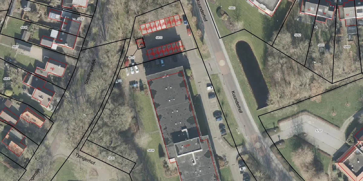 Het perceel waarop Kuunderhof 37 staat heeft een oppervlakte van 5622 m². Dit is een zeer groot perceel. De perceeloppervlakte wordt geregistreerd door het Kadaster. Gedetailleerde informatie over de maten van dit perceel kunt u vinden in het rapport Kadastrale kaart met maatvoering van Kuunderhof 37.
