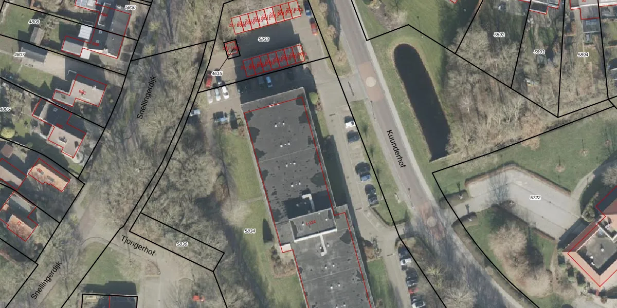 Het perceel waarop Kuunderhof 47 staat heeft een oppervlakte van 5622 m². Dit is een zeer groot perceel. De perceeloppervlakte wordt geregistreerd door het Kadaster. Gedetailleerde informatie over de maten van dit perceel kunt u vinden in het rapport Kadastrale kaart met maatvoering van Kuunderhof 47.