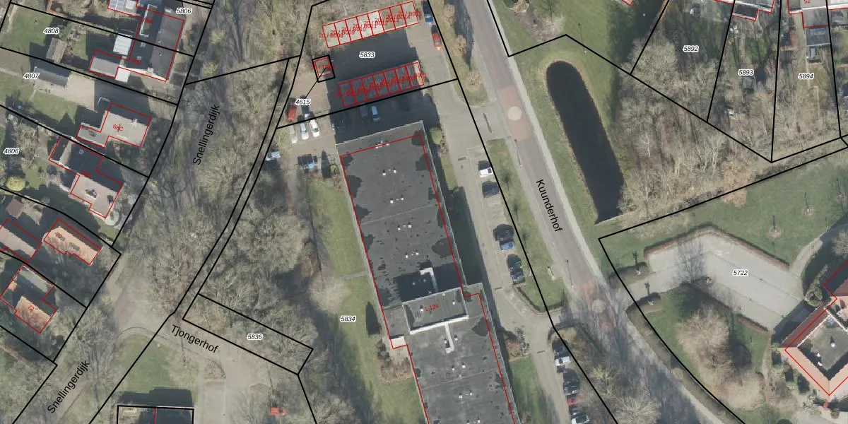 Het perceel waarop Kuunderhof 71 staat heeft een oppervlakte van 5622 m². Dit is een zeer groot perceel. De perceeloppervlakte wordt geregistreerd door het Kadaster. Gedetailleerde informatie over de maten van dit perceel kunt u vinden in het rapport Kadastrale kaart met maatvoering van Kuunderhof 71.