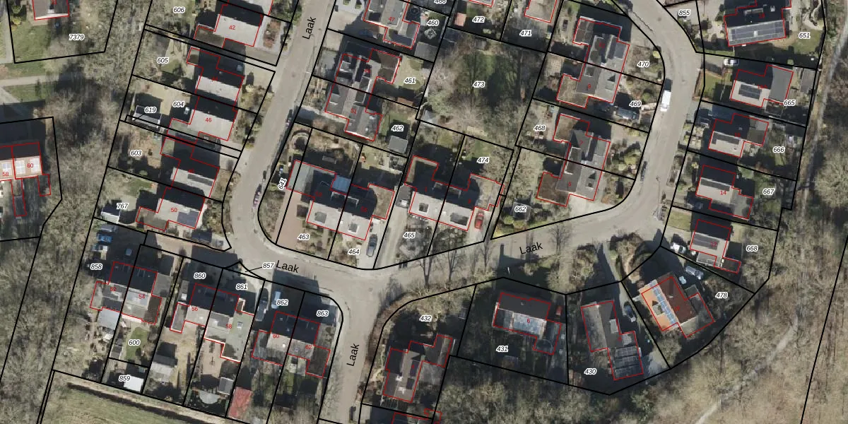 Het perceel waarop Laak 1 staat heeft een oppervlakte van 371 m². Dit is een groot perceel. De perceeloppervlakte wordt geregistreerd door het Kadaster. Gedetailleerde informatie over de maten van dit perceel kunt u vinden in het rapport Kadastrale kaart met maatvoering van Laak 1.