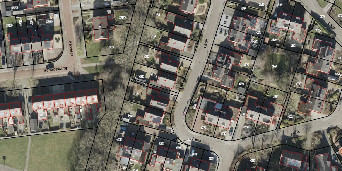 Het perceel waarop Laak 46 staat heeft een oppervlakte van 334 m². Dit is een groot perceel. De perceeloppervlakte wordt geregistreerd door het Kadaster. Gedetailleerde informatie over de maten van dit perceel kunt u vinden in het rapport Kadastrale kaart met maatvoering van Laak 46.
