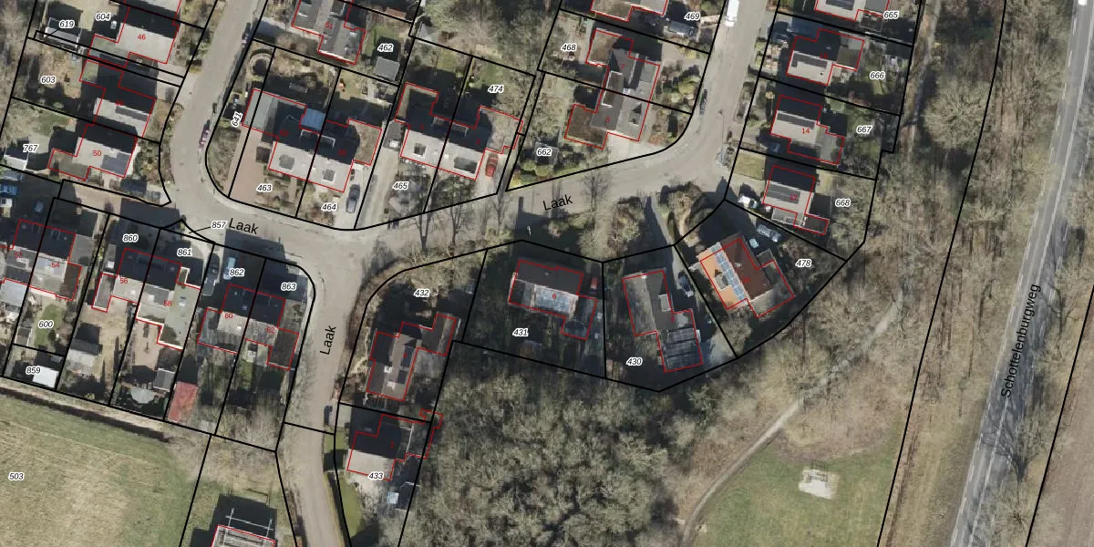 Het perceel waarop Laak 6 staat heeft een oppervlakte van 497 m². Dit is een groot perceel. De perceeloppervlakte wordt geregistreerd door het Kadaster. Gedetailleerde informatie over de maten van dit perceel kunt u vinden in het rapport Kadastrale kaart met maatvoering van Laak 6.