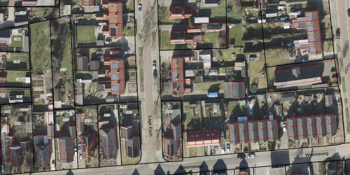 Het perceel waarop Lage Esch 2 staat heeft een oppervlakte van 5700 m². Dit is een zeer groot perceel. De perceeloppervlakte wordt geregistreerd door het Kadaster. Gedetailleerde informatie over de maten van dit perceel kunt u vinden in het rapport Kadastrale kaart met maatvoering van Lage Esch 2.