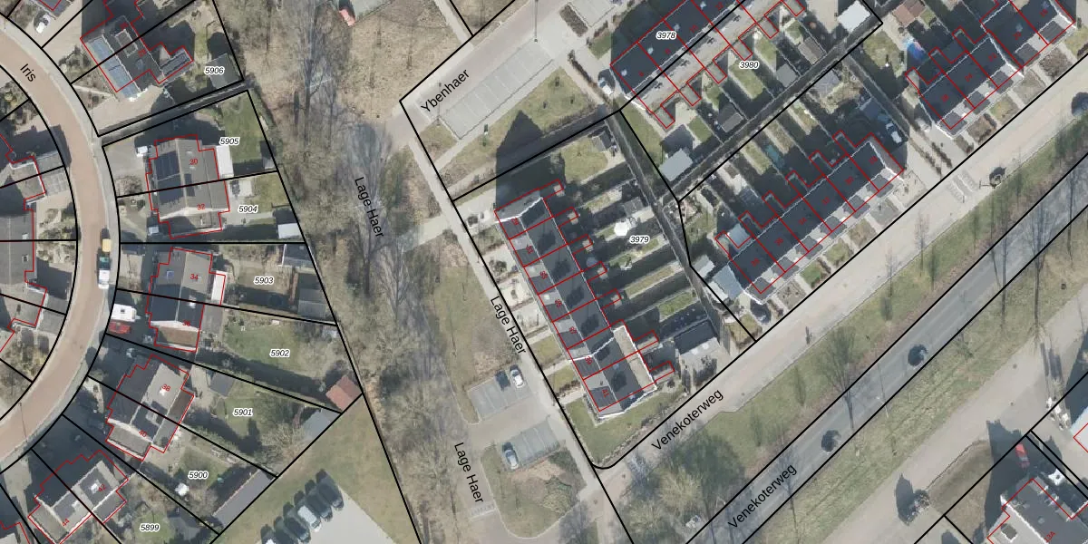 Het perceel waarop Lage Haer 33 staat heeft een oppervlakte van 1880 m². Dit is een zeer groot perceel. De perceeloppervlakte wordt geregistreerd door het Kadaster. Gedetailleerde informatie over de maten van dit perceel kunt u vinden in het rapport Kadastrale kaart met maatvoering van Lage Haer 33.