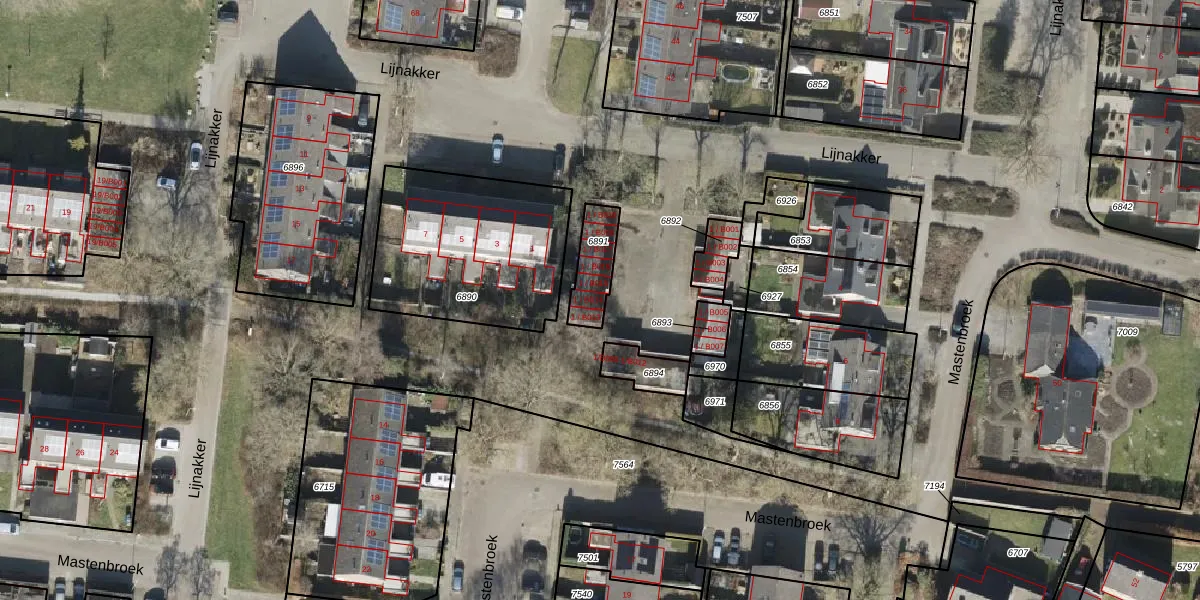 Lijnakker 1-B014 is gelegen op kadastraal perceel OTW02A6891. Deze kadastrale aanduiding is uniek en wordt gebruikt door het Kadaster om eigendomsrechten en andere zakelijke rechten vast te leggen. Het perceel maakt onderdeel uit van de kadastrale gemeente Oosterwolde.