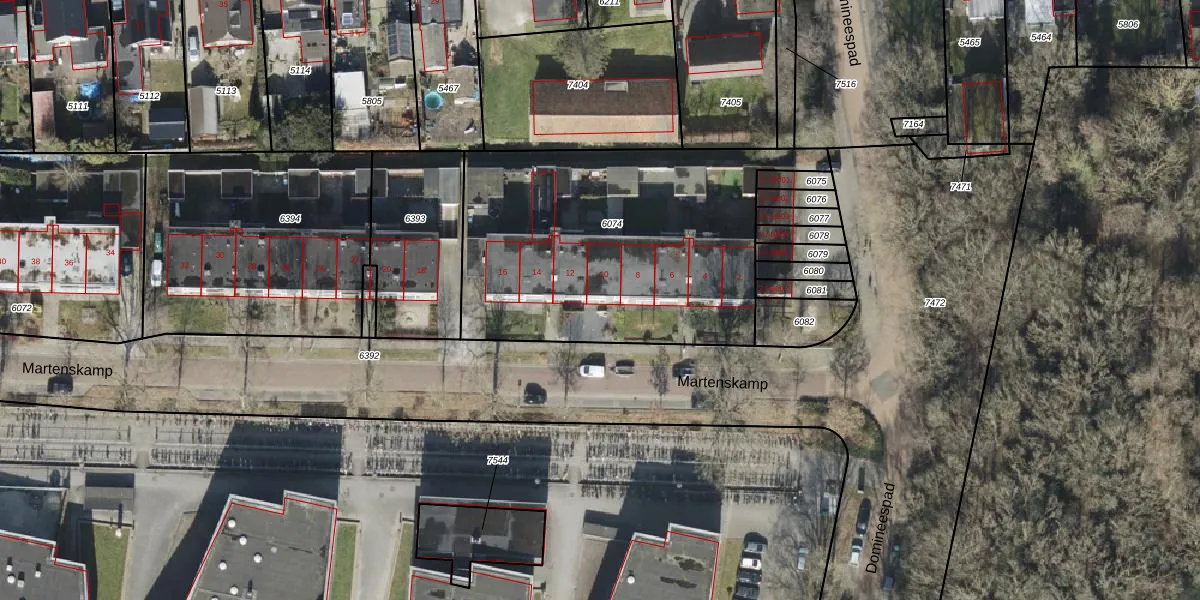 Martenskamp 10 is gelegen op kadastraal perceel OTW02A6074. Deze kadastrale aanduiding is uniek en wordt gebruikt door het Kadaster om eigendomsrechten en andere zakelijke rechten vast te leggen. Het perceel maakt onderdeel uit van de kadastrale gemeente Oosterwolde.