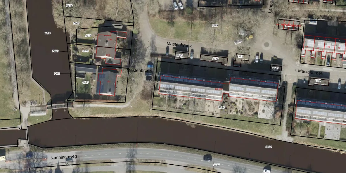 Het perceel waarop Mastenbroek 121 staat heeft een oppervlakte van 2078 m². Dit is een zeer groot perceel. De perceeloppervlakte wordt geregistreerd door het Kadaster. Gedetailleerde informatie over de maten van dit perceel kunt u vinden in het rapport Kadastrale kaart met maatvoering van Mastenbroek 121.