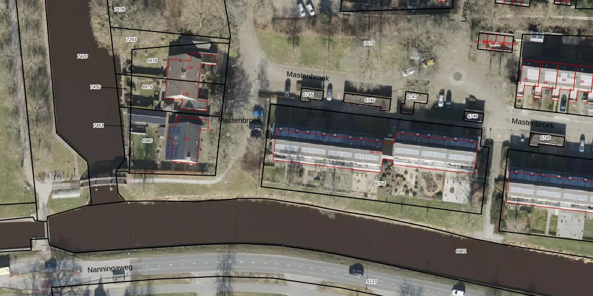 Het perceel waarop Mastenbroek 123 staat heeft een oppervlakte van 2078 m². Dit is een zeer groot perceel. De perceeloppervlakte wordt geregistreerd door het Kadaster. Gedetailleerde informatie over de maten van dit perceel kunt u vinden in het rapport Kadastrale kaart met maatvoering van Mastenbroek 123.