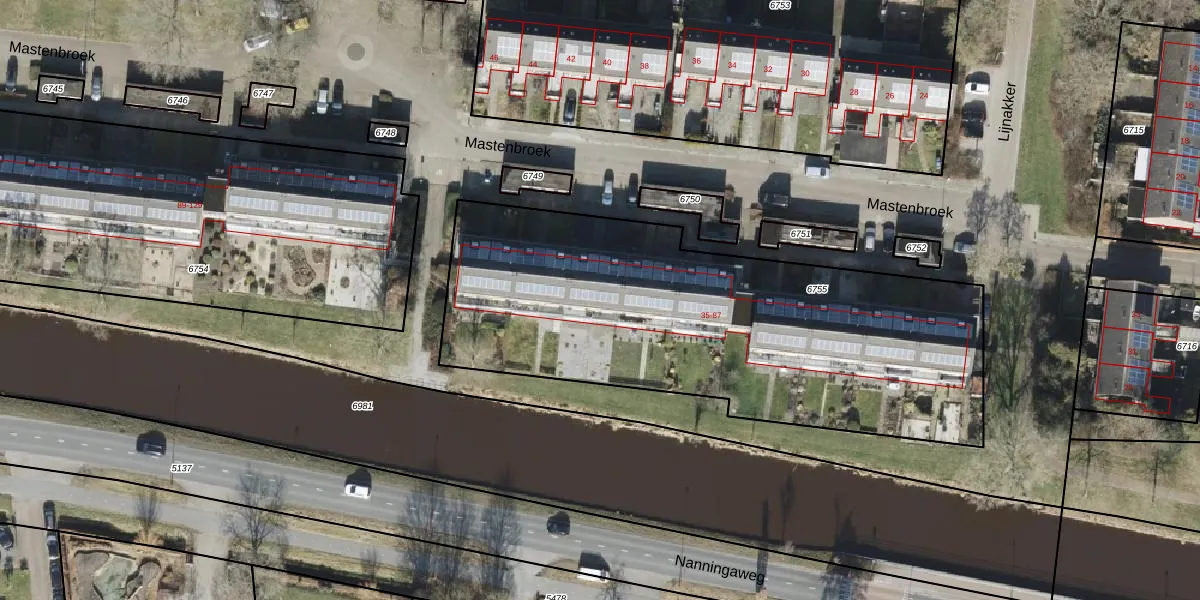 Mastenbroek 45 is gelegen op kadastraal perceel OTW02A6755. Deze kadastrale aanduiding is uniek en wordt gebruikt door het Kadaster om eigendomsrechten en andere zakelijke rechten vast te leggen. Het perceel maakt onderdeel uit van de kadastrale gemeente Oosterwolde.