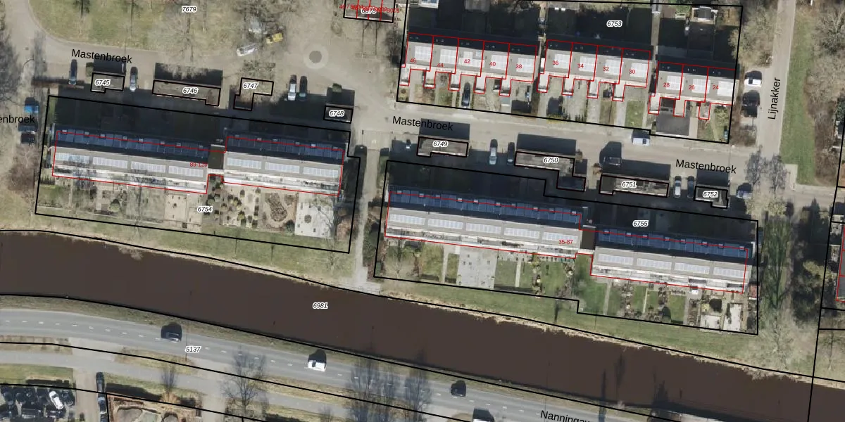 Mastenbroek 71 is gelegen op kadastraal perceel OTW02A6755. Deze kadastrale aanduiding is uniek en wordt gebruikt door het Kadaster om eigendomsrechten en andere zakelijke rechten vast te leggen. Het perceel maakt onderdeel uit van de kadastrale gemeente Oosterwolde.