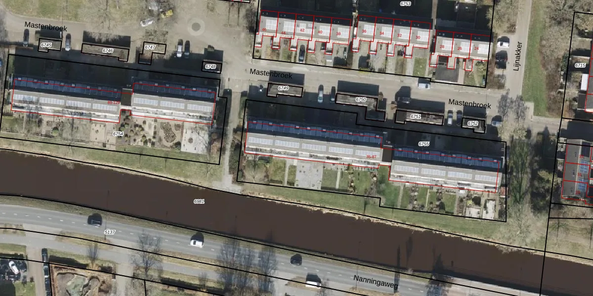 Het perceel waarop Mastenbroek 79 staat heeft een oppervlakte van 2407 m². Dit is een zeer groot perceel. De perceeloppervlakte wordt geregistreerd door het Kadaster. Gedetailleerde informatie over de maten van dit perceel kunt u vinden in het rapport Kadastrale kaart met maatvoering van Mastenbroek 79.