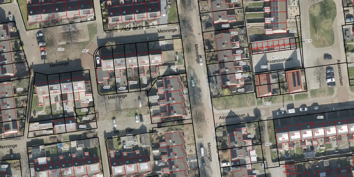 Het perceel waarop Menninge 134 staat heeft een oppervlakte van 576 m². Dit is een groot perceel. De perceeloppervlakte wordt geregistreerd door het Kadaster. Gedetailleerde informatie over de maten van dit perceel kunt u vinden in het rapport Kadastrale kaart met maatvoering van Menninge 134.