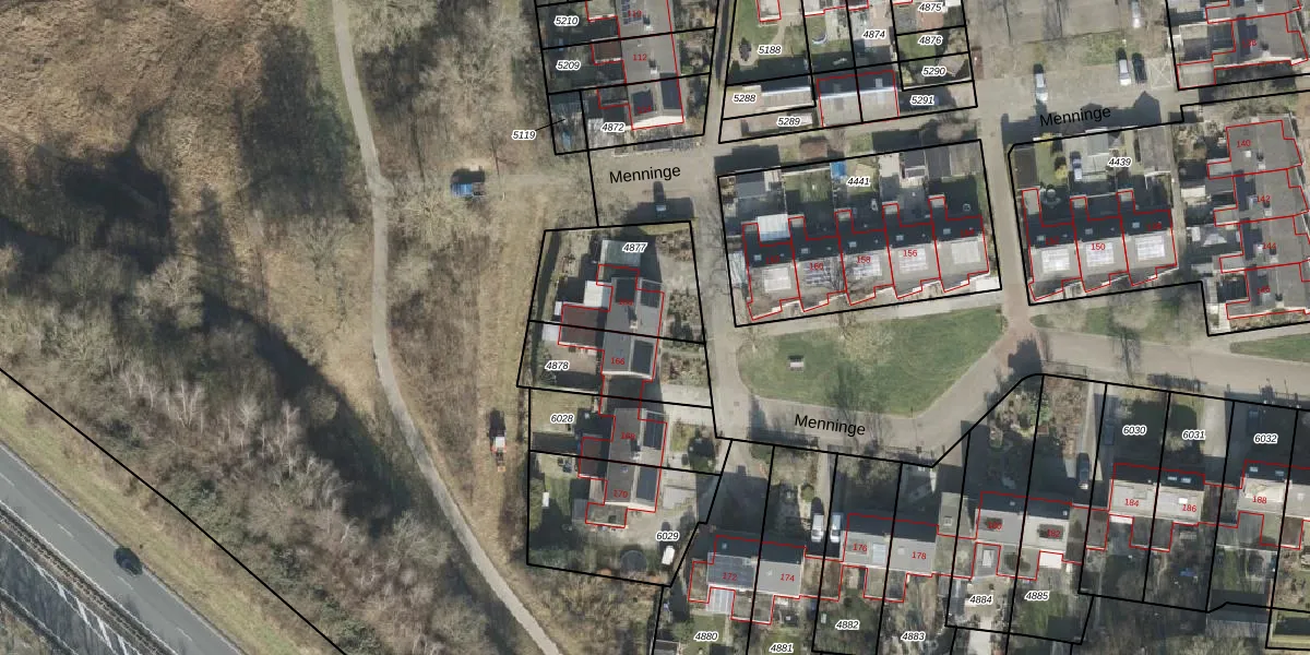 Het perceel waarop Menninge 164 staat heeft een oppervlakte van 364 m². Dit is een groot perceel. De perceeloppervlakte wordt geregistreerd door het Kadaster. Gedetailleerde informatie over de maten van dit perceel kunt u vinden in het rapport Kadastrale kaart met maatvoering van Menninge 164.