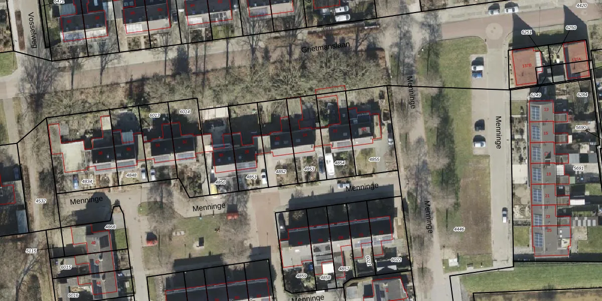 Gebruik de zoekbalk of klik op een perceel voor informatie over de adressen binnen dit perceel.