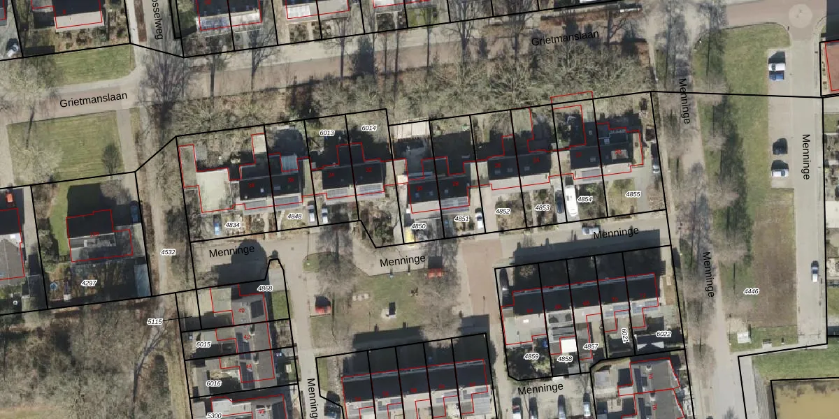 Menninge 30 is gelegen op kadastraal perceel OTW02C4850. Deze kadastrale aanduiding is uniek en wordt gebruikt door het Kadaster om eigendomsrechten en andere zakelijke rechten vast te leggen. Het perceel maakt onderdeel uit van de kadastrale gemeente Oosterwolde.