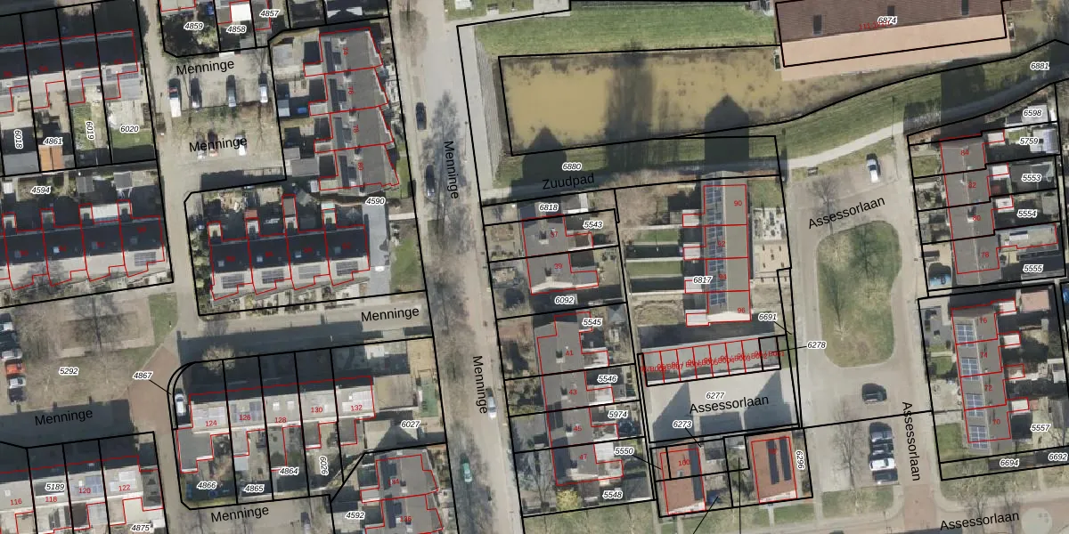 Menninge 39 is gelegen op kadastraal perceel OTW02C6092. Deze kadastrale aanduiding is uniek en wordt gebruikt door het Kadaster om eigendomsrechten en andere zakelijke rechten vast te leggen. Het perceel maakt onderdeel uit van de kadastrale gemeente Oosterwolde.