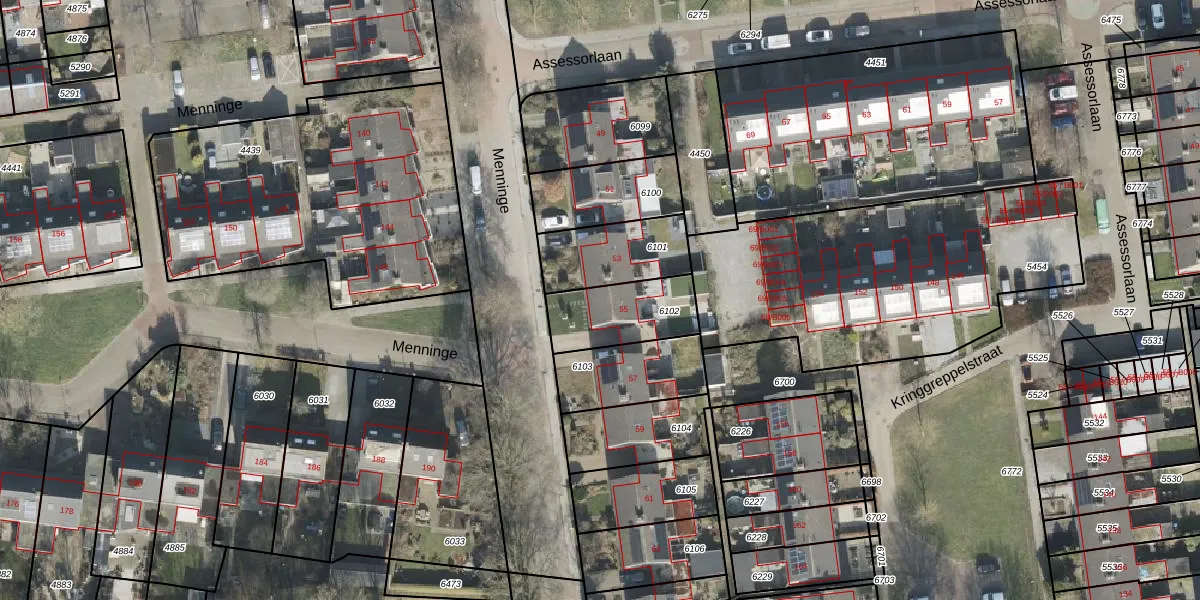 Gebruik de zoekbalk of klik op een perceel voor informatie over de adressen binnen dit perceel.