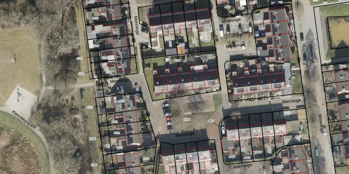 Het perceel waarop Menninge 96 staat heeft een oppervlakte van 993 m². Dit is een groot perceel. De perceeloppervlakte wordt geregistreerd door het Kadaster. Gedetailleerde informatie over de maten van dit perceel kunt u vinden in het rapport Kadastrale kaart met maatvoering van Menninge 96.