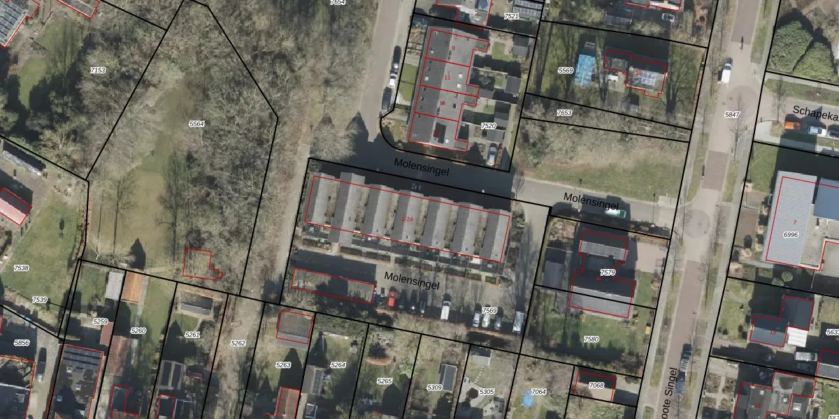 Molensingel 10 is gelegen op kadastraal perceel OTW02A7569. Deze kadastrale aanduiding is uniek en wordt gebruikt door het Kadaster om eigendomsrechten en andere zakelijke rechten vast te leggen. Het perceel maakt onderdeel uit van de kadastrale gemeente Oosterwolde.