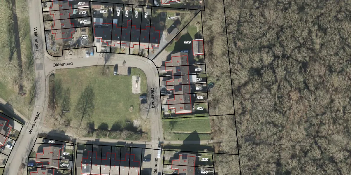 Oldemaad 19 is gelegen op kadastraal perceel OTW02D1661. Deze kadastrale aanduiding is uniek en wordt gebruikt door het Kadaster om eigendomsrechten en andere zakelijke rechten vast te leggen. Het perceel maakt onderdeel uit van de kadastrale gemeente Oosterwolde.