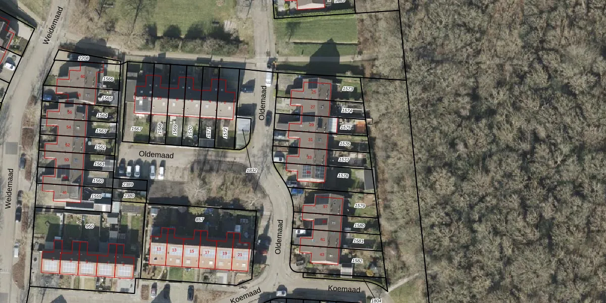Het perceel waarop Oldemaad 33 staat heeft een oppervlakte van 176 m². Dit is een middelgroot perceel. De perceeloppervlakte wordt geregistreerd door het Kadaster. Gedetailleerde informatie over de maten van dit perceel kunt u vinden in het rapport Kadastrale kaart met maatvoering van Oldemaad 33.