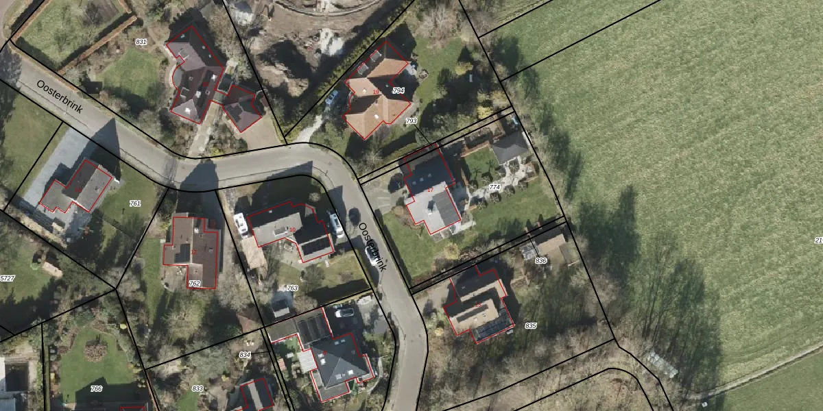 Het perceel waarop Oosterbrink 17 staat heeft een oppervlakte van 1175 m². Dit is een zeer groot perceel. De perceeloppervlakte wordt geregistreerd door het Kadaster. Gedetailleerde informatie over de maten van dit perceel kunt u vinden in het rapport Kadastrale kaart met maatvoering van Oosterbrink 17.