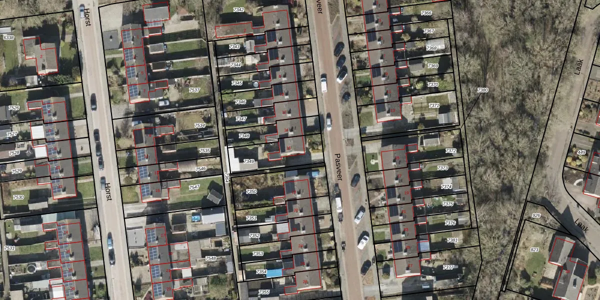 Het perceel waarop Pasveer 16 staat heeft een oppervlakte van 286 m². Dit is een middelgroot perceel. De perceeloppervlakte wordt geregistreerd door het Kadaster. Gedetailleerde informatie over de maten van dit perceel kunt u vinden in het rapport Kadastrale kaart met maatvoering van Pasveer 16.