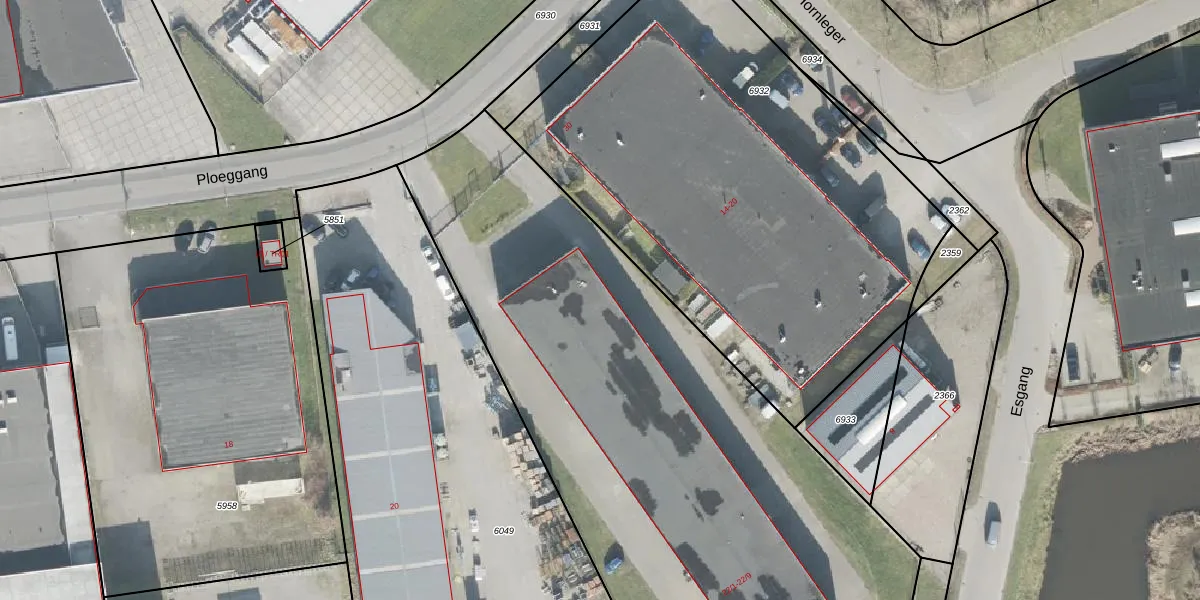 Het perceel waarop Ploeggang 22-6 staat heeft een oppervlakte van 3875 m². Dit is een zeer groot perceel. De perceeloppervlakte wordt geregistreerd door het Kadaster. Gedetailleerde informatie over de maten van dit perceel kunt u vinden in het rapport Kadastrale kaart met maatvoering van Ploeggang 22-6.
