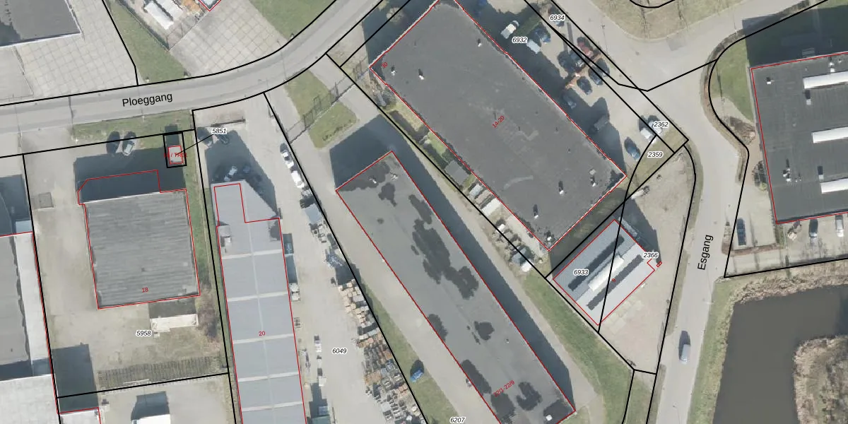 Het perceel waarop Ploeggang 22-12 staat heeft een oppervlakte van 3875 m². Dit is een zeer groot perceel. De perceeloppervlakte wordt geregistreerd door het Kadaster. Gedetailleerde informatie over de maten van dit perceel kunt u vinden in het rapport Kadastrale kaart met maatvoering van Ploeggang 22-12.