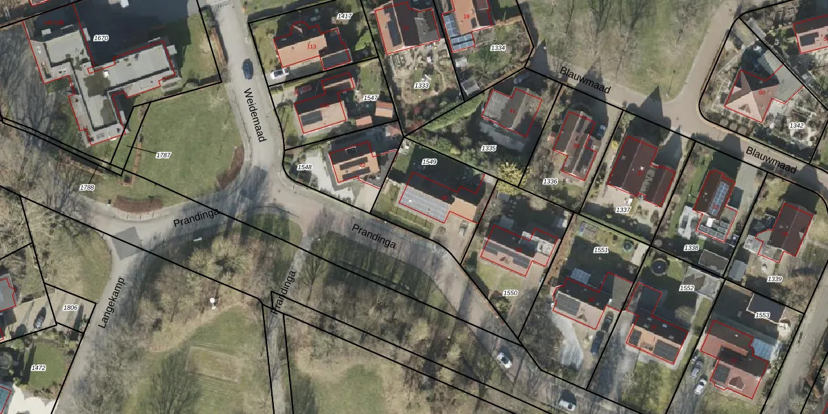 Het perceel waarop Prandinga 20 staat heeft een oppervlakte van 511 m². Dit is een groot perceel. De perceeloppervlakte wordt geregistreerd door het Kadaster. Gedetailleerde informatie over de maten van dit perceel kunt u vinden in het rapport Kadastrale kaart met maatvoering van Prandinga 20.