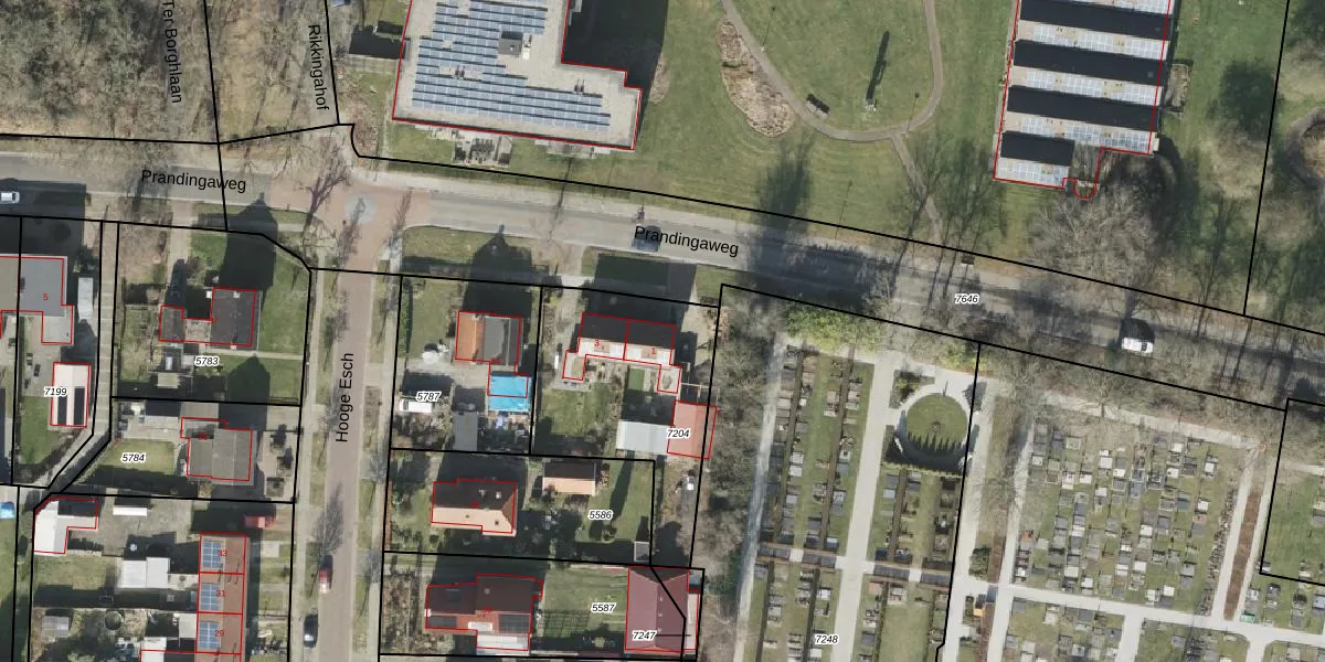 Prandingaweg 1 is gelegen op kadastraal perceel OTW02A7204. Deze kadastrale aanduiding is uniek en wordt gebruikt door het Kadaster om eigendomsrechten en andere zakelijke rechten vast te leggen. Het perceel maakt onderdeel uit van de kadastrale gemeente Oosterwolde.