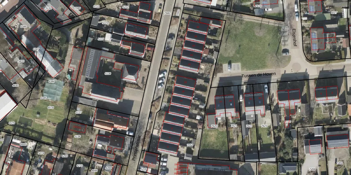 Het perceel waarop Prinsenstraat 16 staat heeft een oppervlakte van 3445 m². Dit is een zeer groot perceel. De perceeloppervlakte wordt geregistreerd door het Kadaster. Gedetailleerde informatie over de maten van dit perceel kunt u vinden in het rapport Kadastrale kaart met maatvoering van Prinsenstraat 16.