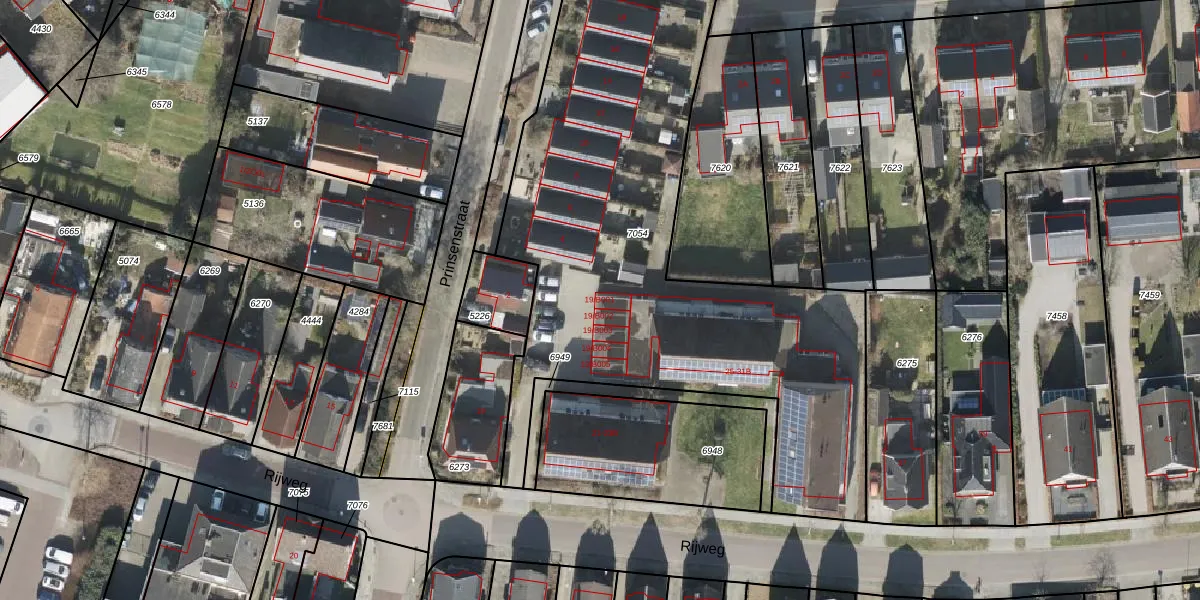 Het perceel waarop Rijweg 19-B001 staat heeft een oppervlakte van 3445 m². Dit is een zeer groot perceel. De perceeloppervlakte wordt geregistreerd door het Kadaster. Gedetailleerde informatie over de maten van dit perceel kunt u vinden in het rapport Kadastrale kaart met maatvoering van Rijweg 19-B001.