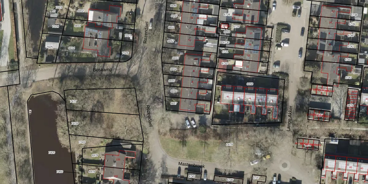 Gebruik de zoekbalk of klik op een perceel voor informatie over de adressen binnen dit perceel.