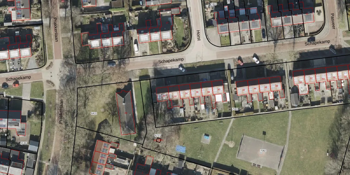 Schapekamp 32 is gelegen op kadastraal perceel OTW02A7081. Deze kadastrale aanduiding is uniek en wordt gebruikt door het Kadaster om eigendomsrechten en andere zakelijke rechten vast te leggen. Het perceel maakt onderdeel uit van de kadastrale gemeente Oosterwolde.