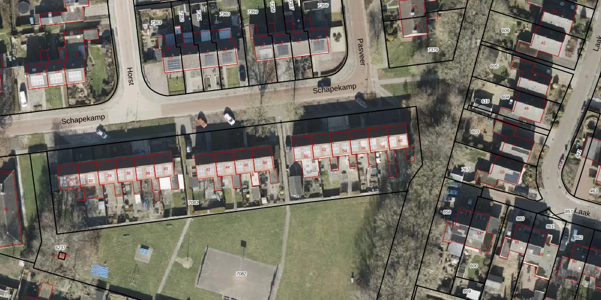 Het perceel waarop Schapekamp 50 staat heeft een oppervlakte van 3330 m². Dit is een zeer groot perceel. De perceeloppervlakte wordt geregistreerd door het Kadaster. Gedetailleerde informatie over de maten van dit perceel kunt u vinden in het rapport Kadastrale kaart met maatvoering van Schapekamp 50.