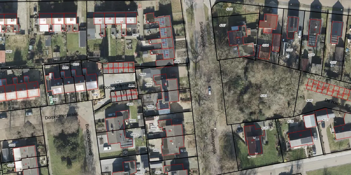 Het perceel waarop Snellingerdijk 50 staat heeft een oppervlakte van 417 m². Dit is een groot perceel. De perceeloppervlakte wordt geregistreerd door het Kadaster. Gedetailleerde informatie over de maten van dit perceel kunt u vinden in het rapport Kadastrale kaart met maatvoering van Snellingerdijk 50.