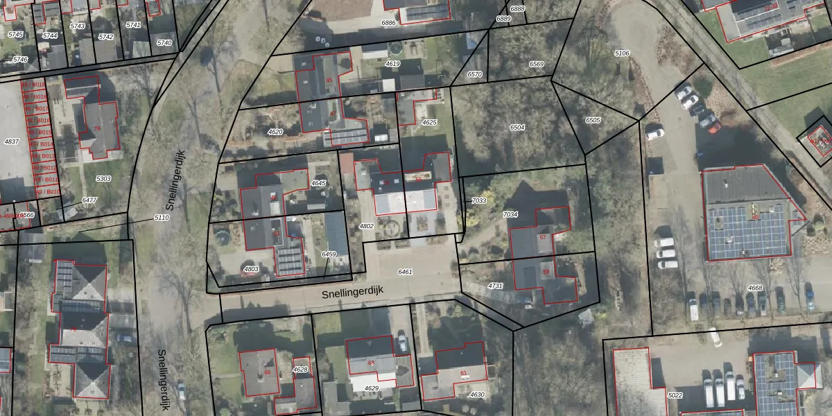 Snellingerdijk 55 is gelegen op kadastraal perceel OTW02C4625. Deze kadastrale aanduiding is uniek en wordt gebruikt door het Kadaster om eigendomsrechten en andere zakelijke rechten vast te leggen. Het perceel maakt onderdeel uit van de kadastrale gemeente Oosterwolde.