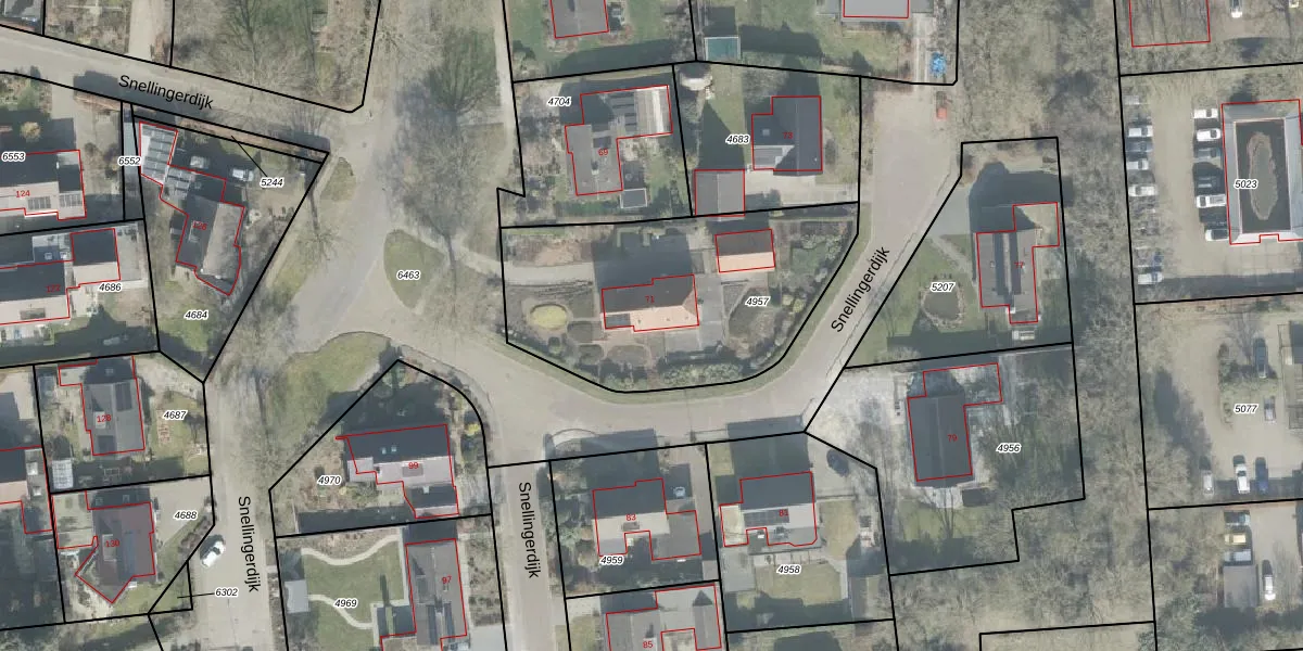 Snellingerdijk 71 is gelegen op kadastraal perceel OTW02C4957. Deze kadastrale aanduiding is uniek en wordt gebruikt door het Kadaster om eigendomsrechten en andere zakelijke rechten vast te leggen. Het perceel maakt onderdeel uit van de kadastrale gemeente Oosterwolde.
