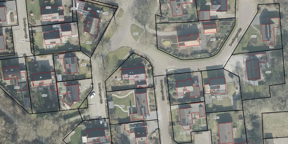 Het perceel waarop Snellingerdijk 99 staat heeft een oppervlakte van 596 m². Dit is een groot perceel. De perceeloppervlakte wordt geregistreerd door het Kadaster. Gedetailleerde informatie over de maten van dit perceel kunt u vinden in het rapport Kadastrale kaart met maatvoering van Snellingerdijk 99.