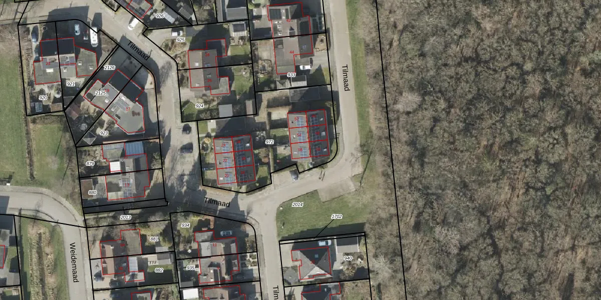 Het perceel waarop Tilmaad 56 staat heeft een oppervlakte van 1172 m². Dit is een zeer groot perceel. De perceeloppervlakte wordt geregistreerd door het Kadaster. Gedetailleerde informatie over de maten van dit perceel kunt u vinden in het rapport Kadastrale kaart met maatvoering van Tilmaad 56.