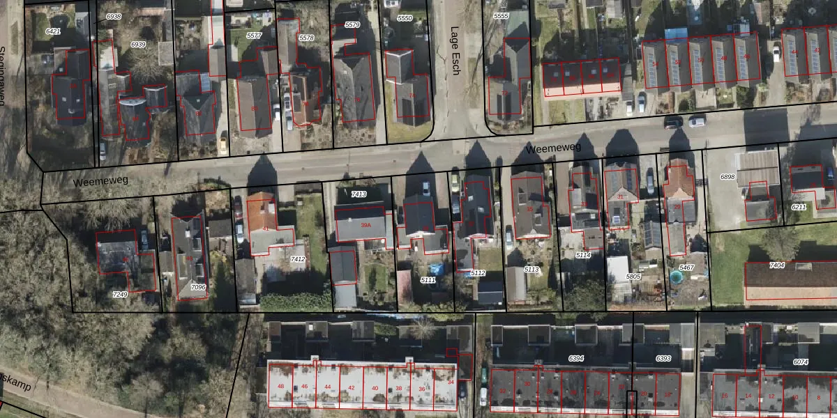 Weemeweg 39 is gelegen op kadastraal perceel OTW02A5111. Deze kadastrale aanduiding is uniek en wordt gebruikt door het Kadaster om eigendomsrechten en andere zakelijke rechten vast te leggen. Het perceel maakt onderdeel uit van de kadastrale gemeente Oosterwolde.