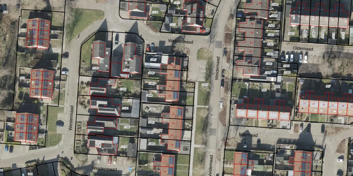 Weidemaad 29 is gelegen op kadastraal perceel OTW02D1845. Deze kadastrale aanduiding is uniek en wordt gebruikt door het Kadaster om eigendomsrechten en andere zakelijke rechten vast te leggen. Het perceel maakt onderdeel uit van de kadastrale gemeente Oosterwolde.