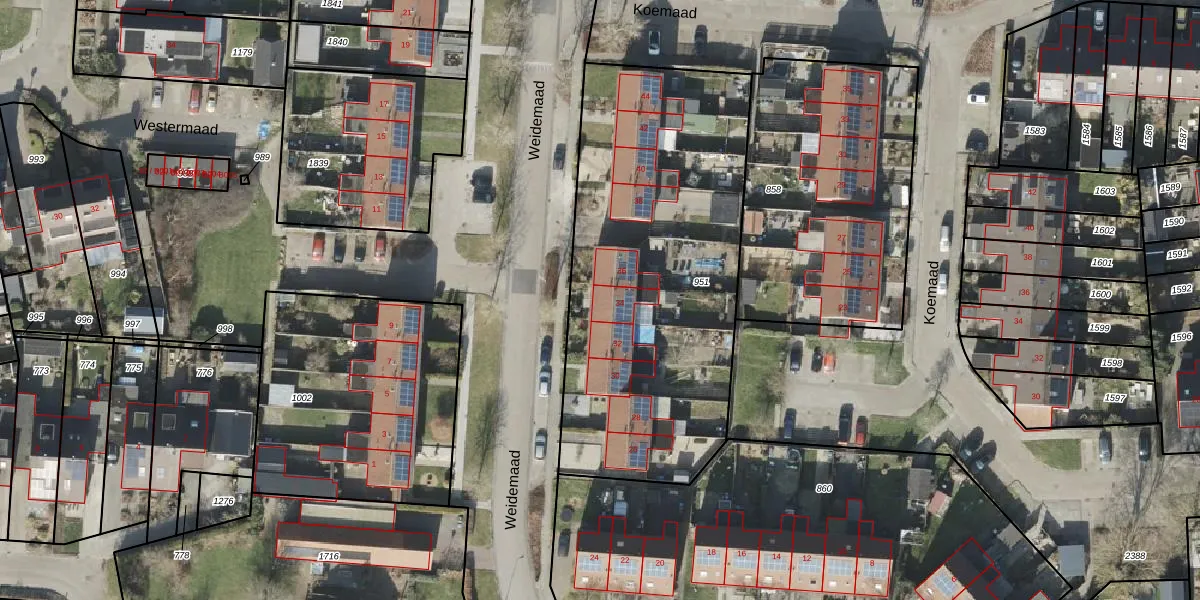 Het perceel waarop Weidemaad 34 staat heeft een oppervlakte van 1891 m². Dit is een zeer groot perceel. De perceeloppervlakte wordt geregistreerd door het Kadaster. Gedetailleerde informatie over de maten van dit perceel kunt u vinden in het rapport Kadastrale kaart met maatvoering van Weidemaad 34.