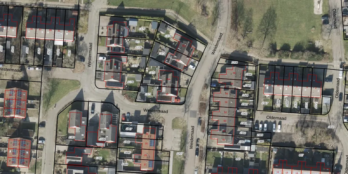 Het perceel waarop Weidemaad 35-A staat heeft een oppervlakte van 320 m². Dit is een groot perceel. De perceeloppervlakte wordt geregistreerd door het Kadaster. Gedetailleerde informatie over de maten van dit perceel kunt u vinden in het rapport Kadastrale kaart met maatvoering van Weidemaad 35-A.