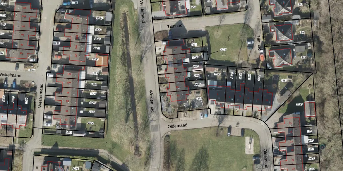 Gebruik de zoekbalk of klik op een perceel voor informatie over de adressen binnen dit perceel.