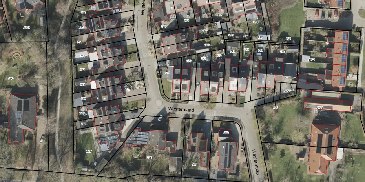 Het perceel waarop Westermaad 14 staat heeft een oppervlakte van 200 m². Dit is een middelgroot perceel. De perceeloppervlakte wordt geregistreerd door het Kadaster. Gedetailleerde informatie over de maten van dit perceel kunt u vinden in het rapport Kadastrale kaart met maatvoering van Westermaad 14.