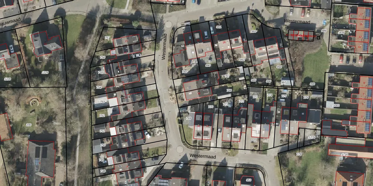 Gebruik de zoekbalk of klik op een perceel voor informatie over de adressen binnen dit perceel.